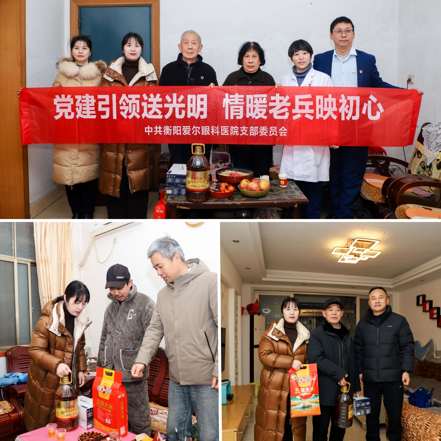 新春将至,岁寒情暖。为弘扬拥军优属光荣传统,表达对退役军人的崇高敬意与深切关怀,1月20日,衡阳爱尔眼科医院与市退役军人事务局、蒸湘区退役军人事务局、雁峰区退役军人事务局联合开展“情暖老兵·关爱退役军人”新春慰问活动。工作人员专程走访曾通过“情暖老兵”公益项目接受白内障手术的退役老兵,为他们送去节日问候与祝福,也见证了一个个重获光明后的温暖故事。
