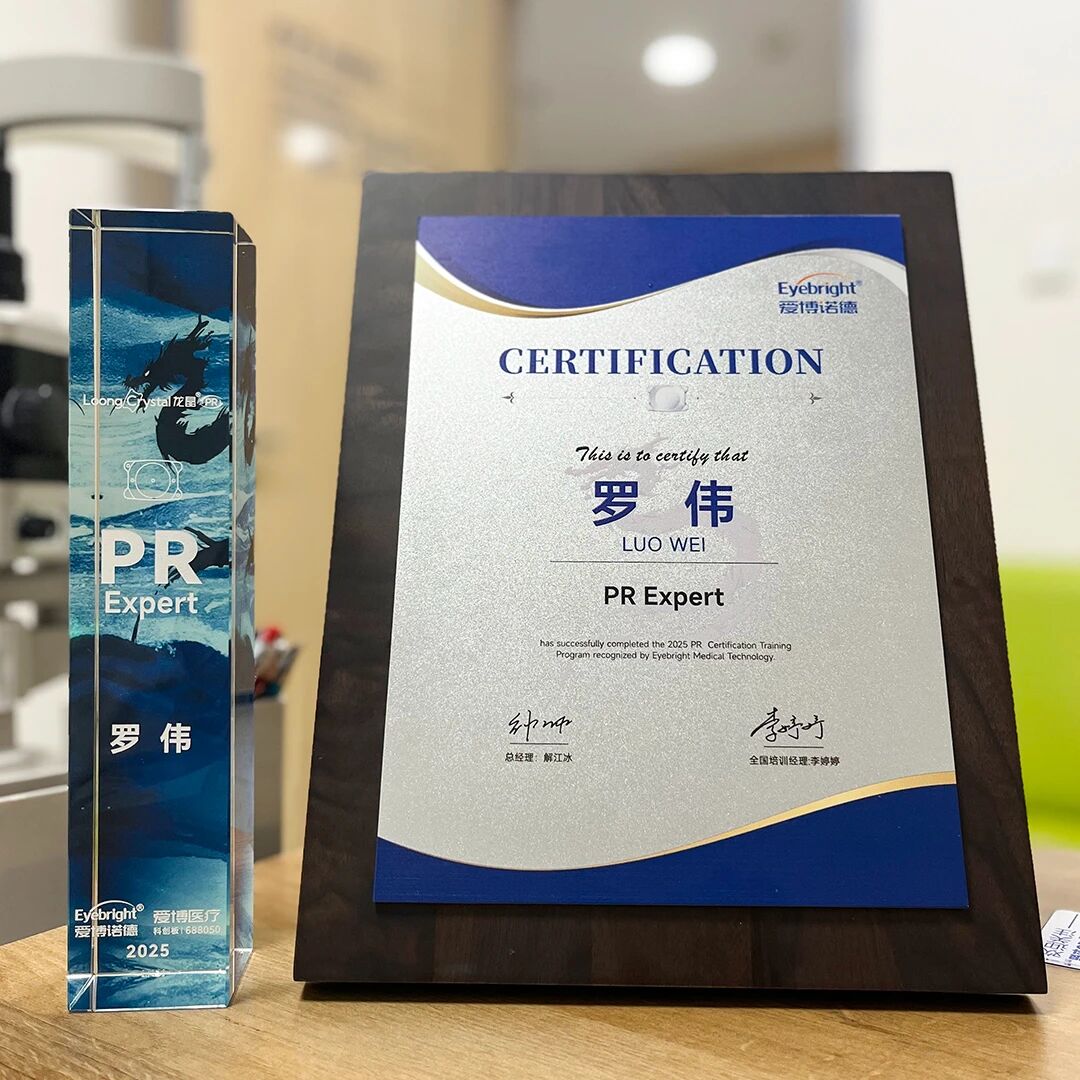 2025年4月,罗伟副院长获得“龙晶®PR型晶体手术认证”,成为国内较早掌握该技术的眼科专家之一
