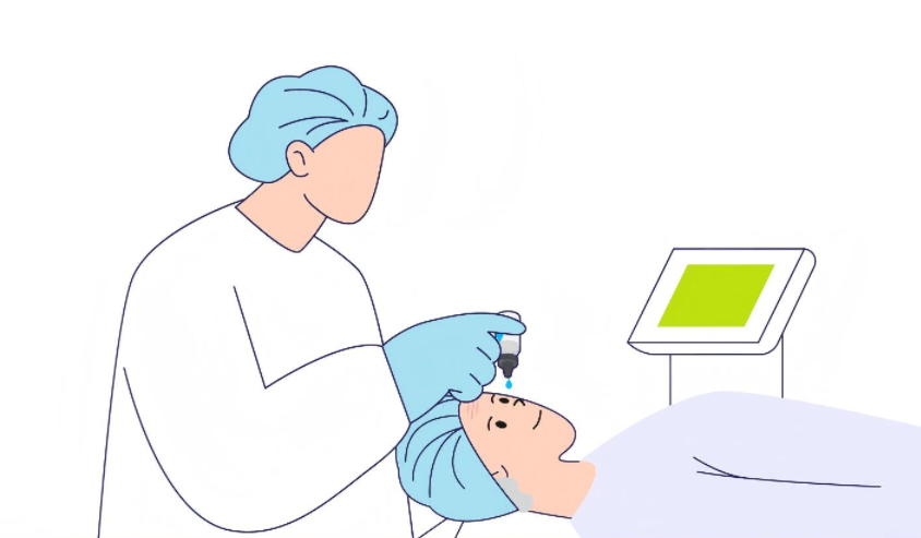 第1步:滴眼药水麻醉。不用打针,只需滴几滴麻醉眼药水,眼睛就会暂时失去知觉。手术过程中几乎没有疼痛感,最多只有一点点轻微的异物感——就像眼睛里进了一粒小沙子,大多数人都能忍受,术后很快就能缓解。